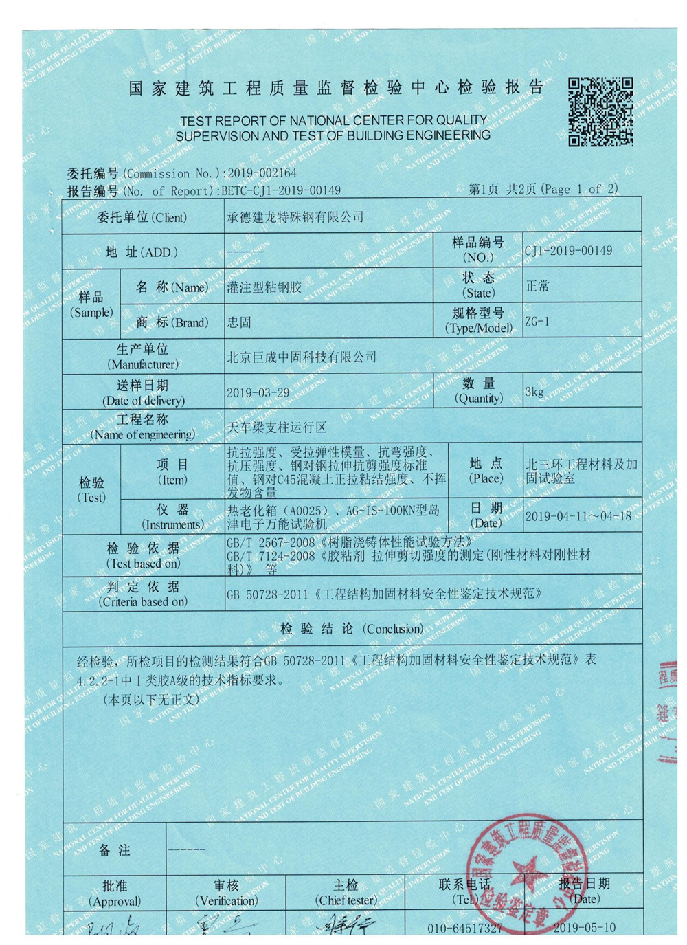 粘钢胶检测报告